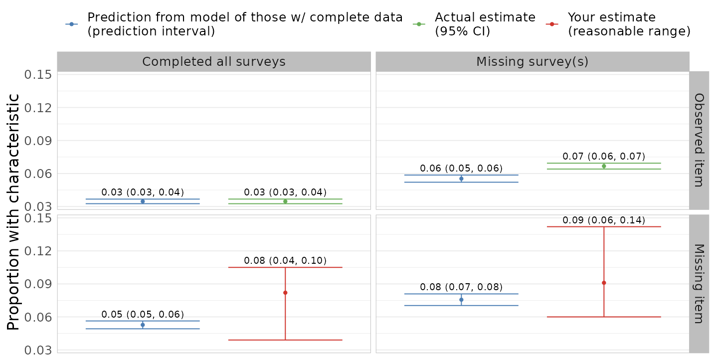 where \(\color{IndianRed}{\delta}\) parameterizes how much different the distribution (expectation) of \(Y\) is in observations with missing data patterns where it is missing (\(\color{SlateBlue}{r_0}\))