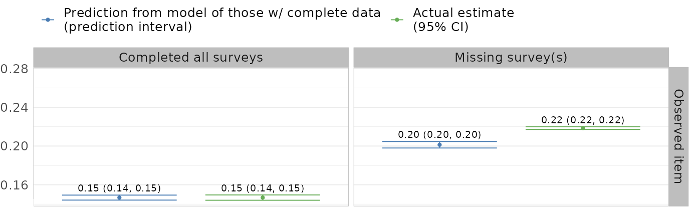 For a given item \(Y\), we collapsed missingness patterns into: